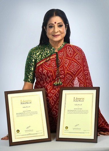 An unheard of super human record was achieved by an Indian from Mumbai, Mrs. Kalpana Shah a 74 year old self-made Saree Draping Artist in April 2022 that has now being entered in Limca Book of Records.